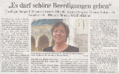 | Schwäbische Zeitung vom 10. November 2012 Bericht über die Tagung „Forum Friedhof. Würdig sterben, in Würde gedenken“ in Ulm am 9. November 2012 |