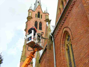 | Die Stadtkirche im Zentrum von Blaubeuren besitzt schöne gotische und neugotische Schmuckelemente. Im Frühsommer führten wir eine Bestandsdokumentation aus: mit Hilfe eines Kranwagens wurde der Außenbereich des Gebäudes untersucht. Den Befund hielten wir in einer umfangreichen Dokumentation fest. Ein Restaurierungskonzept und eine Kostenschätzung erstellten wir ebenfalls. Bei der Ausschreibung zur Ausführung der Restaurierungsarbeiten erhielten wir den Zuschlag. Noch in diesem Jahr soll die Restaurierung durchgeführt werden. |