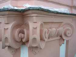 | Sommer 2005 Kirche Gerhausen. Restaurierung des gesamten Architekturschmuckes aus Betonwerkstein. Im Frühjahr wurden wir beauftragt, die Schäden aufzunehmen, zu analysieren und ein Restaurierungskonzept zu erstellen. Dies wurde in einer umfangreichen Schadensanalyse festgehalten. Im Sommer erhielten wir den Zuschlag für die Ausführung der Restaurierung, die von August bis Oktober erfolgte. |