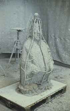 Um ein positives Wachsmodell zu gewinnen, das dem Originalmodell genau entspricht und später ausgeschmolzen werden kann, muss zunächst eine flexible Negativform erstellt werden. Dazu wird das Originalmodell jeweils zu einer Hälfte mit Tonplatten belegt, die dann mit Gips überzogen werden. Sind die so genannten „Gipsstützschalen“ getrocknet, wird die Tonschicht entfernt und beide Schalen werden wieder um das Modell gelegt. Anschließend wird in die jeweilige Hohlraumhälfte zwischen Originalmodell und Gips flüssige Gelatine oder Silikon gegossen.