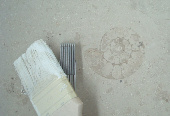 Februar 2013 Der Boden liegt schon! Um die Abläufe im Betrieb zu optimieren, renovieren wir einen Raum, der künftig als Büro genutzt wird. Mit dem Naturstein für den Boden hatten wir Glück: wunderschöne Versteinerungen kamen zum Vorschein. |