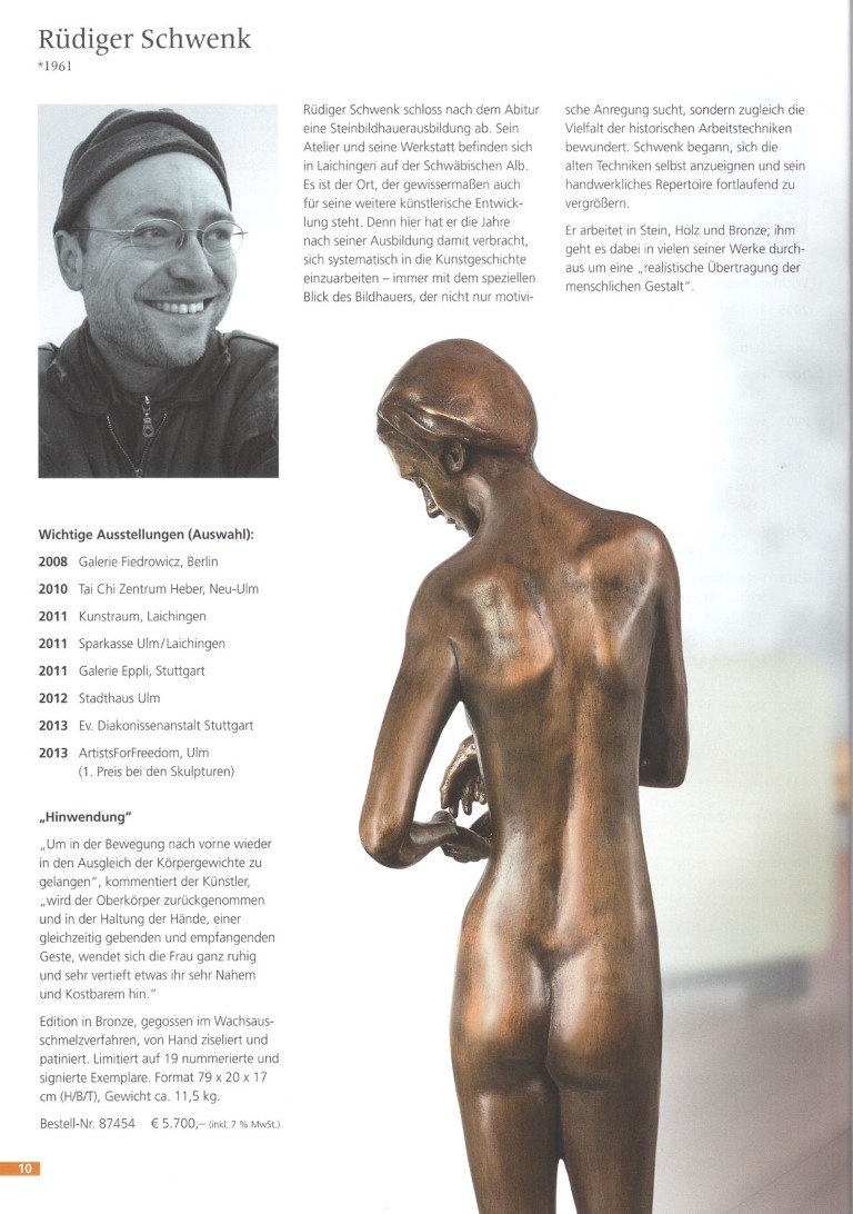 November 2013 BILDHAUER Viele Jahre hat Rüdiger Schwenk bei uns gearbeitet und ist auch heute immer wieder in unserer Werkstatt tätig. Schön, dass er mit seiner Bildhauerkunst Erfolg hat. |