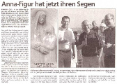 | Schwäbische Zeitung, 28. August 2009 Anna-Figur hat jetzt ihren Segen |