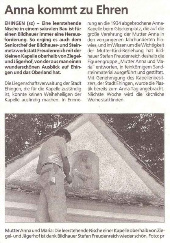 | Schwäbische Zeitung, 21. August 2009 Anna kommt zu Ehren |