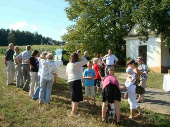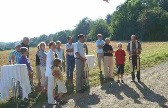 | Am 27. August 2009 übergaben wir im Kreis von Familie und Freunden die von Stefan Freudenreich gestaltete Figur „Mutter Anna mit Maria“. Bürgermeister Baumann, der Vertreter der Stadt Ehingen, nahm gleichsam als Hausherr die Schenkung für die über Ehingen gelegene Kapelle entgegen. Pfarrer Gehrig gab ihr den kirchlichen Segen. |