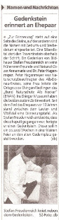 | Schwäbische Zeitung 24. März 2009 Gedenkstein erinnert an Ehepaar |