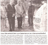 | Schwäbische Zeitung, 10. Juni 2009 Lions Club enthüllt Stein zum Gedenken an den Allemannenfriedhof |