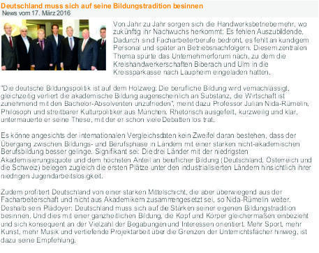 ihrer Haltung gegenüber der derzeitigen Bildungspolitik und lieferte