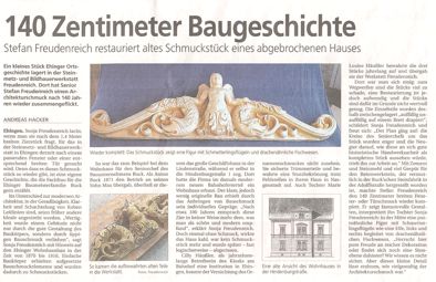 Ehinger Tagblatt 13.12.2016 Zwei Objekte , an denen wir mitgearbeitet haben, haben Sanierungspreise erhalten. Darüber freuen wir uns als ausführende Handwerker auch: