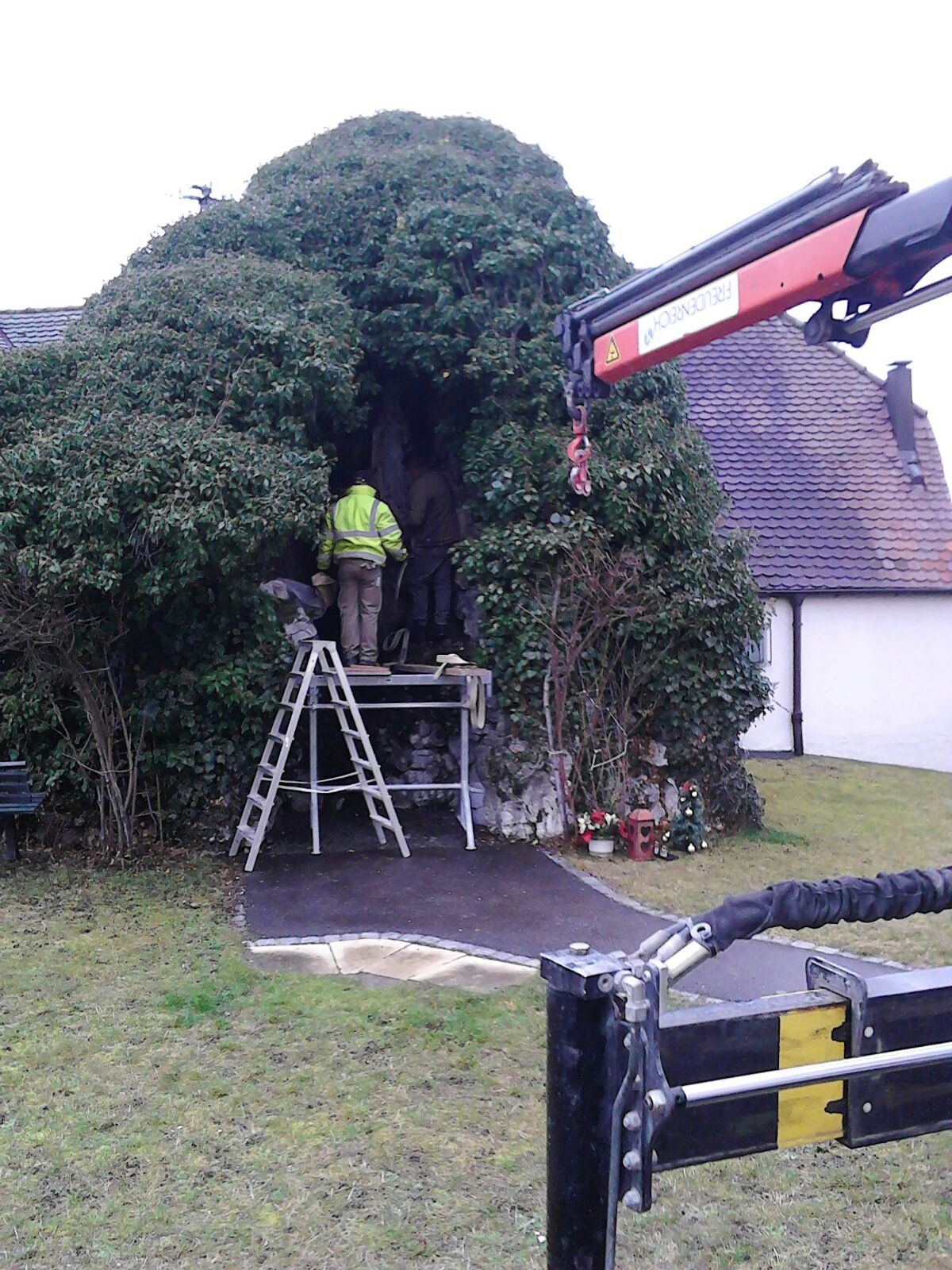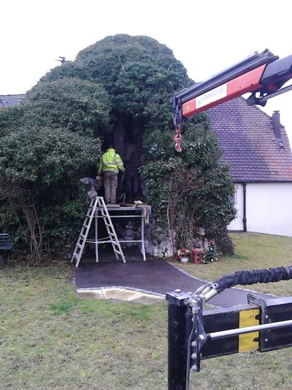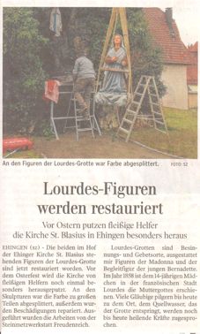 die Figuren der Lourdes-Grotte in die Werkstatt.