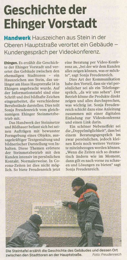 Eine Steintafel erzählt Geschichte der Ehinger Vorstadt