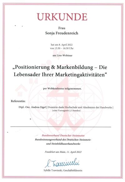 HERZLICH , IHRE UND EURE STEINMETZ- UND BILDHAUERWERKSTATT FREUDENREICH